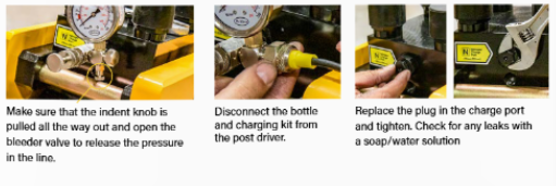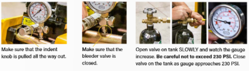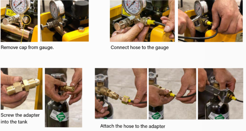 Connect nitrogen tank, regulator, and hose. Prepare the system for charging.