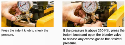 Slowly increase pressure. Do NOT exceed 230 PSI.